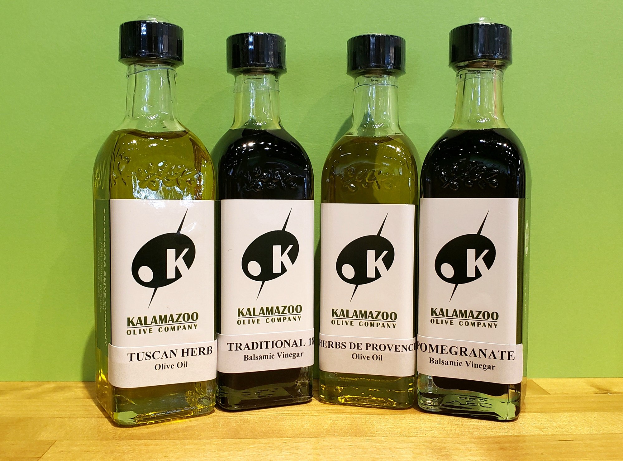 Enjoy four 60ml bottles. Box includes Tuscan Herb Olive Oil, Traditional Balsamic, Herbs de Provence Olive Oil and Pomegranate Balsamic.